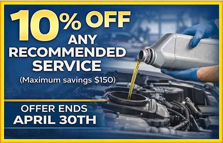 Been putting off that recommended service? Now’s the time to take care of it—and save while you do it. ?? 10% OFF Any Recommended Service (Maximum savings $150) From maintenance to repairs, our team has you covered. Offer ends April 30th