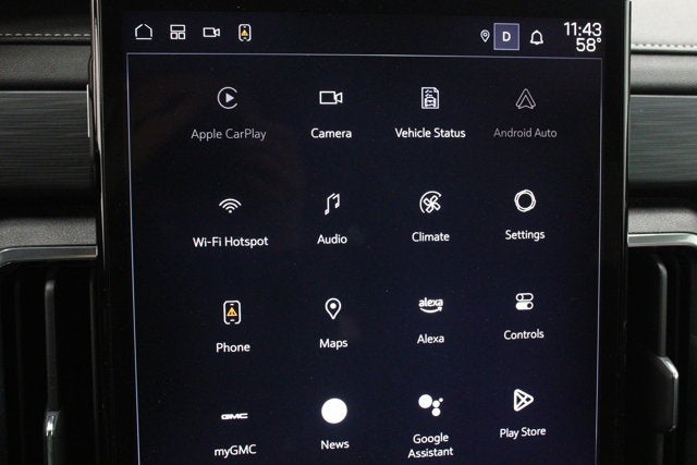 - 15" diagonal Premium GMC Infotainment System with high contrast display, with Google built-in compatibility, including navigation capability, color touch-screen, multi-touch display, connected apps, personalized provides for each driver's settings, Natural Voice Recognition and Phone Integration for Wireless Apple CarPlay/Wireless Android Auto for compatible phones